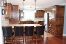 This stunning 5 bedroom, 4.5 bath two storey home with triple bay 40 x 26 garage, walk out basement and beautifully landscaped lot is built to R2000 standards and is a MUST SEE! The back deck leads into the sunroom which is located off a dream kitchen with cognac stained birch cabinets, lots of counter space, stainless steel appliances & double oven! The kitchen is open to a family room with a propane fireplace & space for a large table. The other side of the kitchen leads into the dining room with walk in pantry which has a stand up freezer, counter space, cabinets & shelves! The living room, 1/2 bath & primary bedroom suite complete this level! The Main floor primary bedroom has an ensuite, a laundry room, linen closet and 3 closets! The main level has everything you need on this floor and finished throughout with hardwood and cork flooring. The 2nd level has second master bedroom suite with a walk in closet and an ensuite with heated floors. There are 3 other bedrooms, a TV room/den, a full bath, a 2nd laundry room and a storage room that would make a great playroom for the kids on this floor! The full basement has a large rec room, 3pc bath, storage room, utility room with tons of storage and an area with outdoor access that would make a great space for your at home business! Potential for an in law suite or apartment! This home has been meticulously maintained and continuously upgraded! Move in ready! Some other features include heat recovery unit, $330/mth heat and lights, water softener, lots of storage, bbq station on the side deck, gazebo off the back deck and more! Upgrades include shingles 2023, heat pump 2023, new siding 2019, new kitchen 2018, new flooring 2018, sun room added 2002, new moldings and boston headers 2018, wired and heated garage/workshop built in 2009, upstairs ensuite reno 2017 and more!! This home has so much to offer! You don't want to miss this one! (id:27)